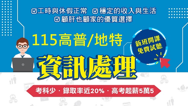 羅東志光 115高普/地特 資訊處理 錄取名額穩定!報名立即上課